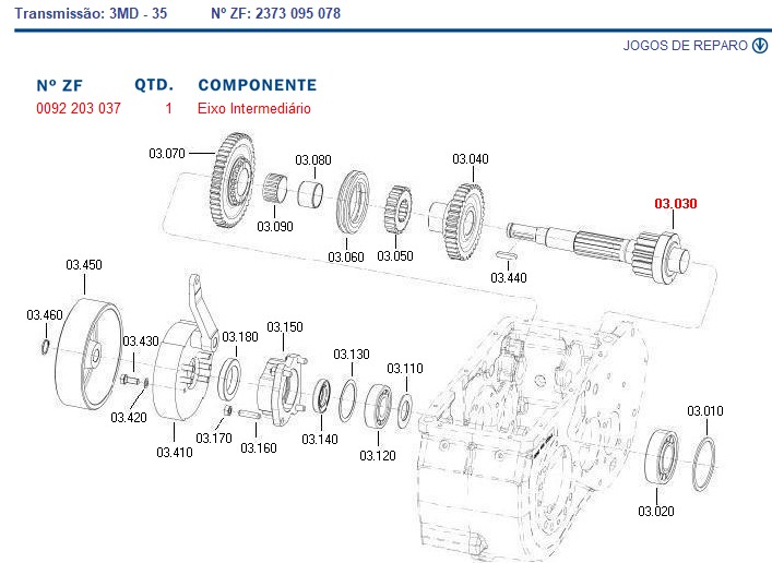 6269164M1 EIXO INTERMEDIARIO CAIXA DE CAMBIO 0095203037 ZF